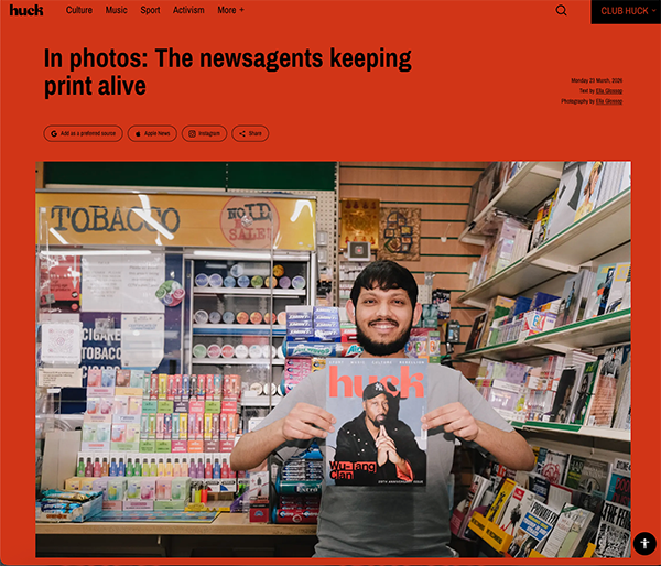 This is a rather cute conceit, as Huck magazine’s Ella Glossop visits and photographs some of the increasingly diminishing number of newsagents who still stock big ranges of print magazines.