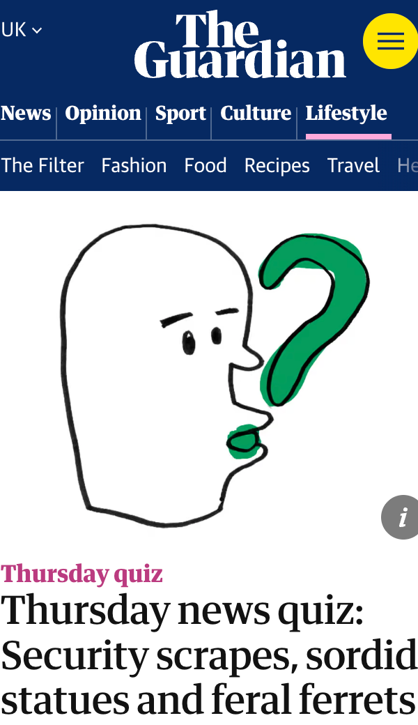 This week’s Guardian Thursday news quiz: Security scrapes, sordid statues and feral ferrets.
